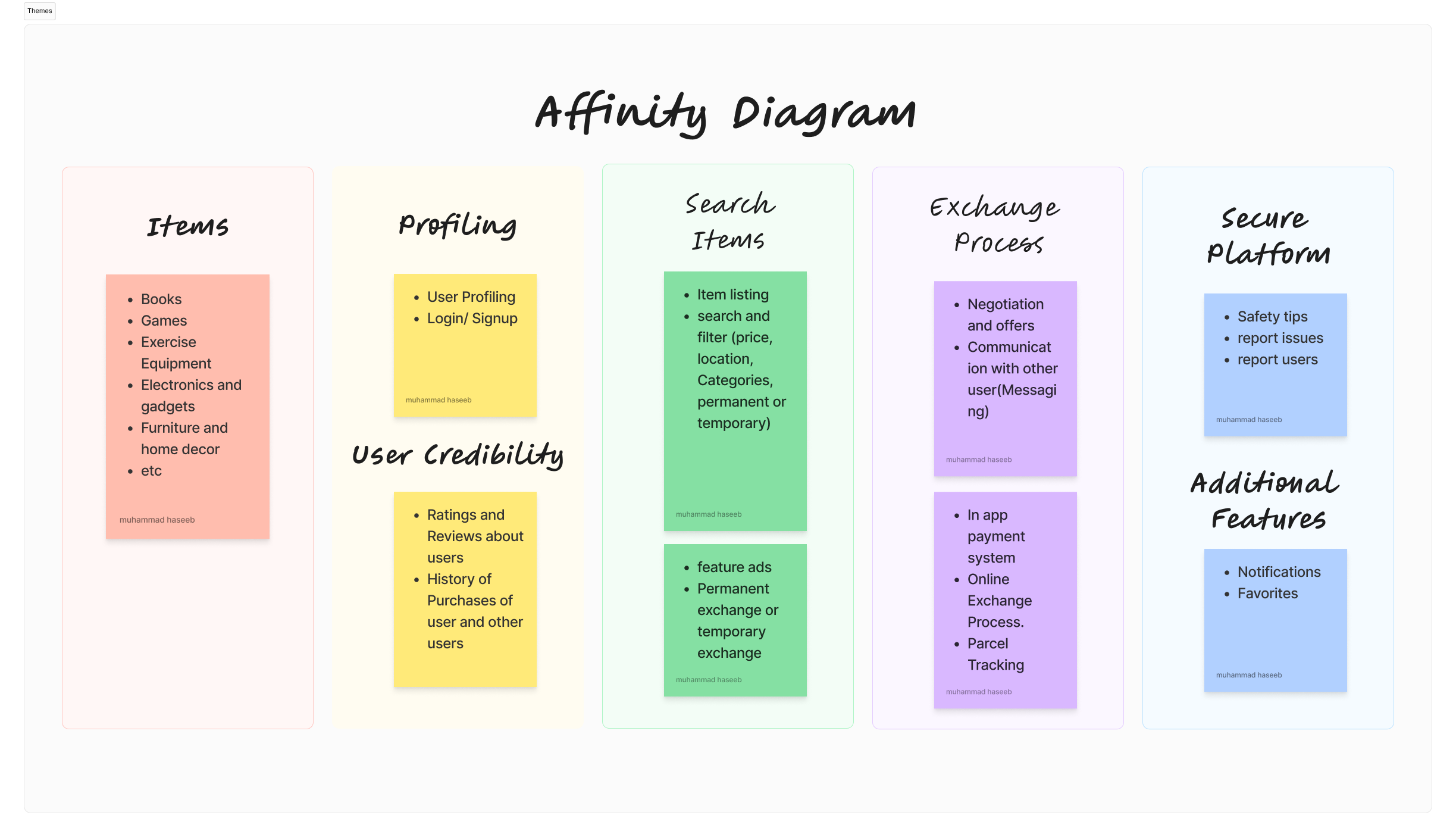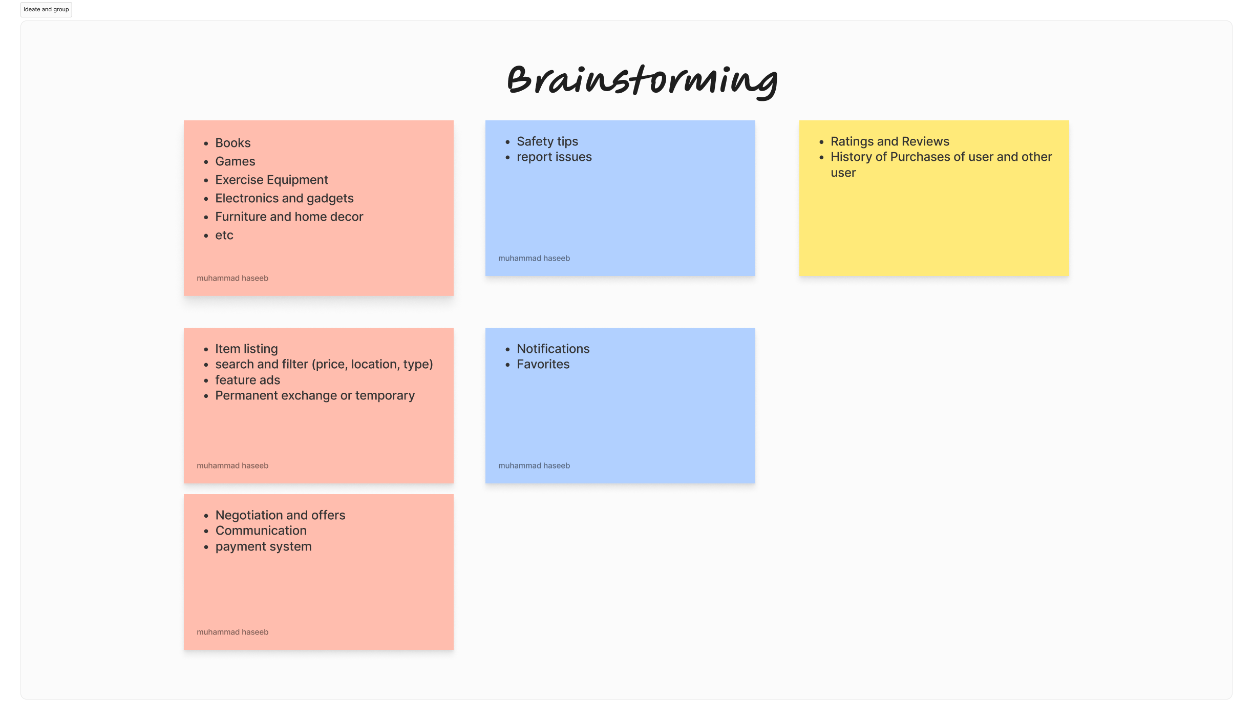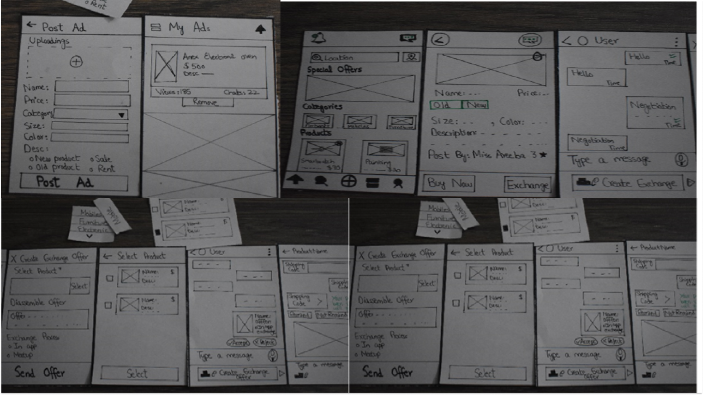 The development process for this item exchange application adhered to a comprehensive and user-centric model. It commenced with an extensive brainstorming phase, fostering collaborative idea generation. The subsequent affinity diagram organized these ideas into cohesive groups, guiding the development of a structured framework. Storyboarding allowed us to visually map user interactions and journeys, ensuring a user-friendly experience. Low-fidelity wireframes provided the foundational layout, evolving through iterative refinement. The transition to high-fidelity designs incorporated brand elements for a polished aesthetic. Prototyping enabled the simulation of user interactions, refined through usability testing.